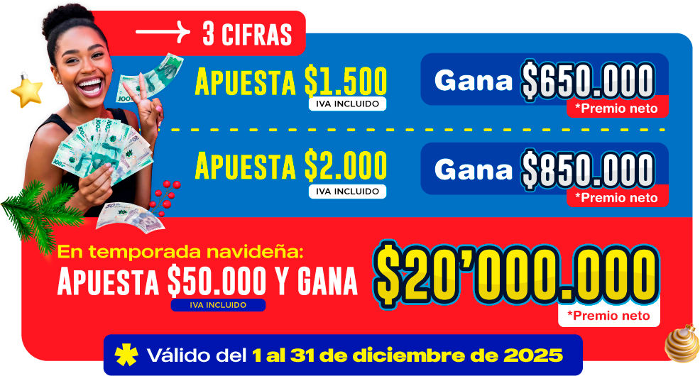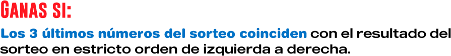 realiza una apuesta principal, posterior el cliente juega tres (3) números de dos (2) cifras y selecciona tres (3) loterías o sorteos y elige contra qué resultado desea acertar cada uno de ellos